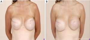 A similar algorithm can be followed when conversions from a sub-pectoral plane to a pre-pectoral plane. Indications for this procedure include animation deformity, poor aesthetic outcome, pain, capsular contracture and patient preference (2). In this algorithm, patients that were previously not pre-pectoral reconstruction candidates may become candidates following a first stage sub-muscular reconstruction. In these instances, a similar algorithm can be followed, but less importance is placed on the viability of the mastectomy flaps as time for healing has occurred. However, for patients who have had radiation therapy, the viability of the flaps is not as predictable and must be carefully assessed.