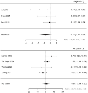 Several studies reported outcomes at multiple follow-up time points. To ensure each study contributed only one effect estimate per outcome, we extracted a single follow-up time point from each study for the primary meta-analysis. When multiple eligible time points were reported, we prespecified the use of the latest available follow-up and the closest available time point to the latest assessment.