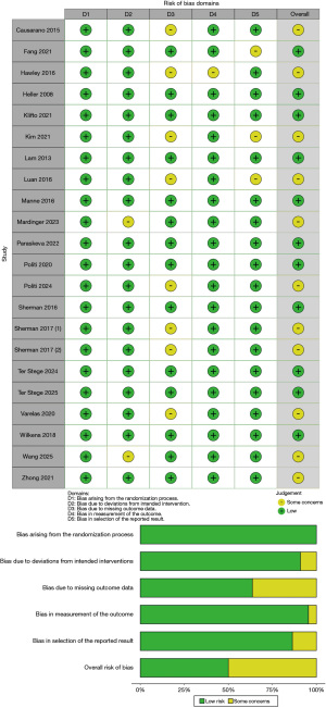 - McGuinness LA, Higgins JPT. Risk-of-bias VISualization (robvis): An R package and Shiny web app for visualizing risk-of-bias assessments. Res Synth Methods 2021;12:55-61. [Crossref] [PubMed]
